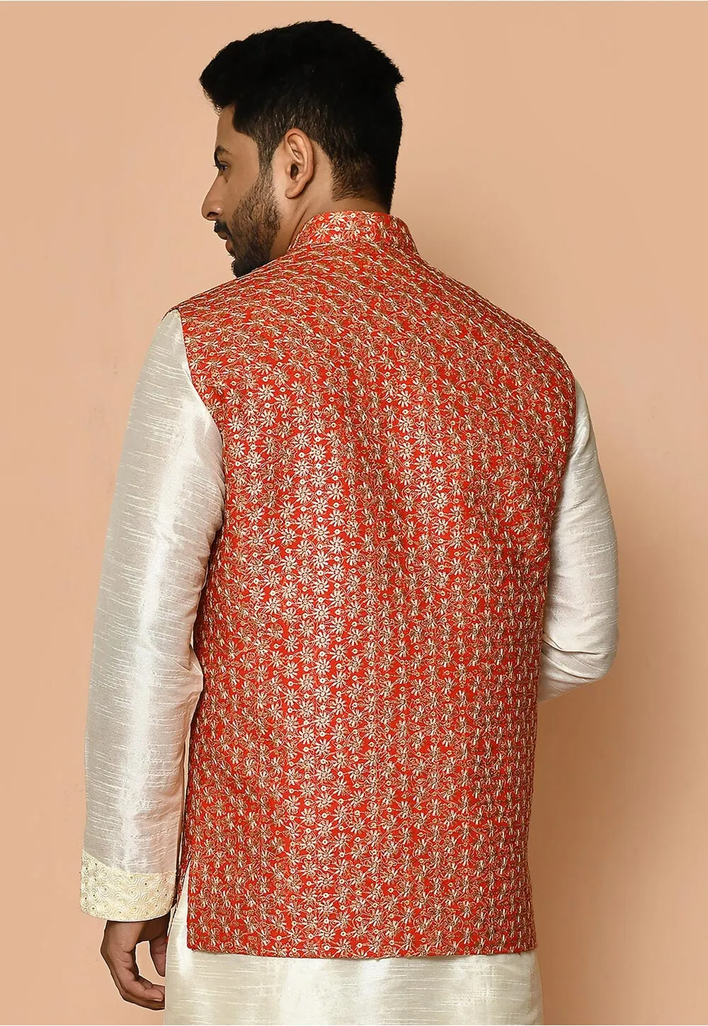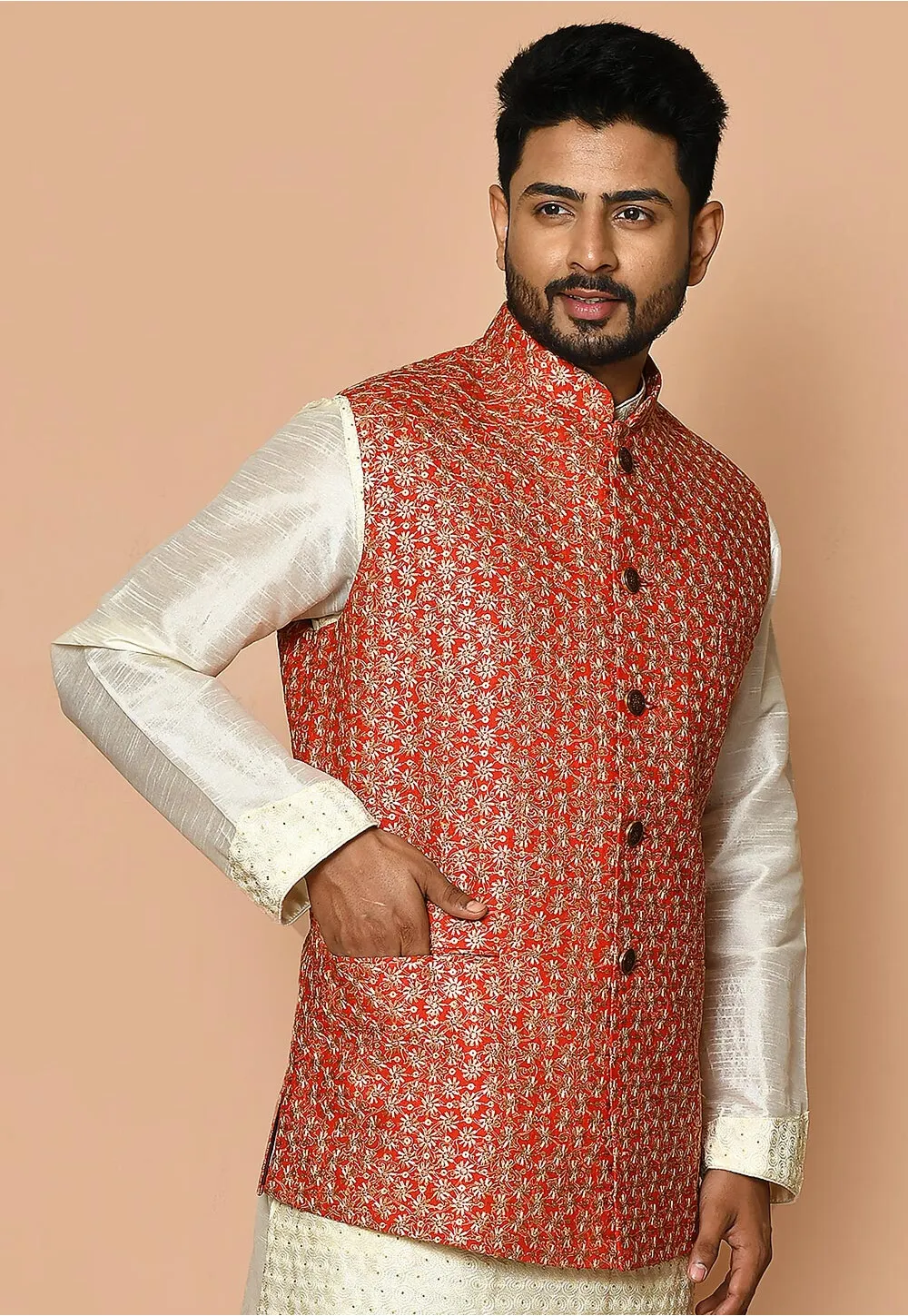 - Readymade Cotton Nehru Jacket in Red