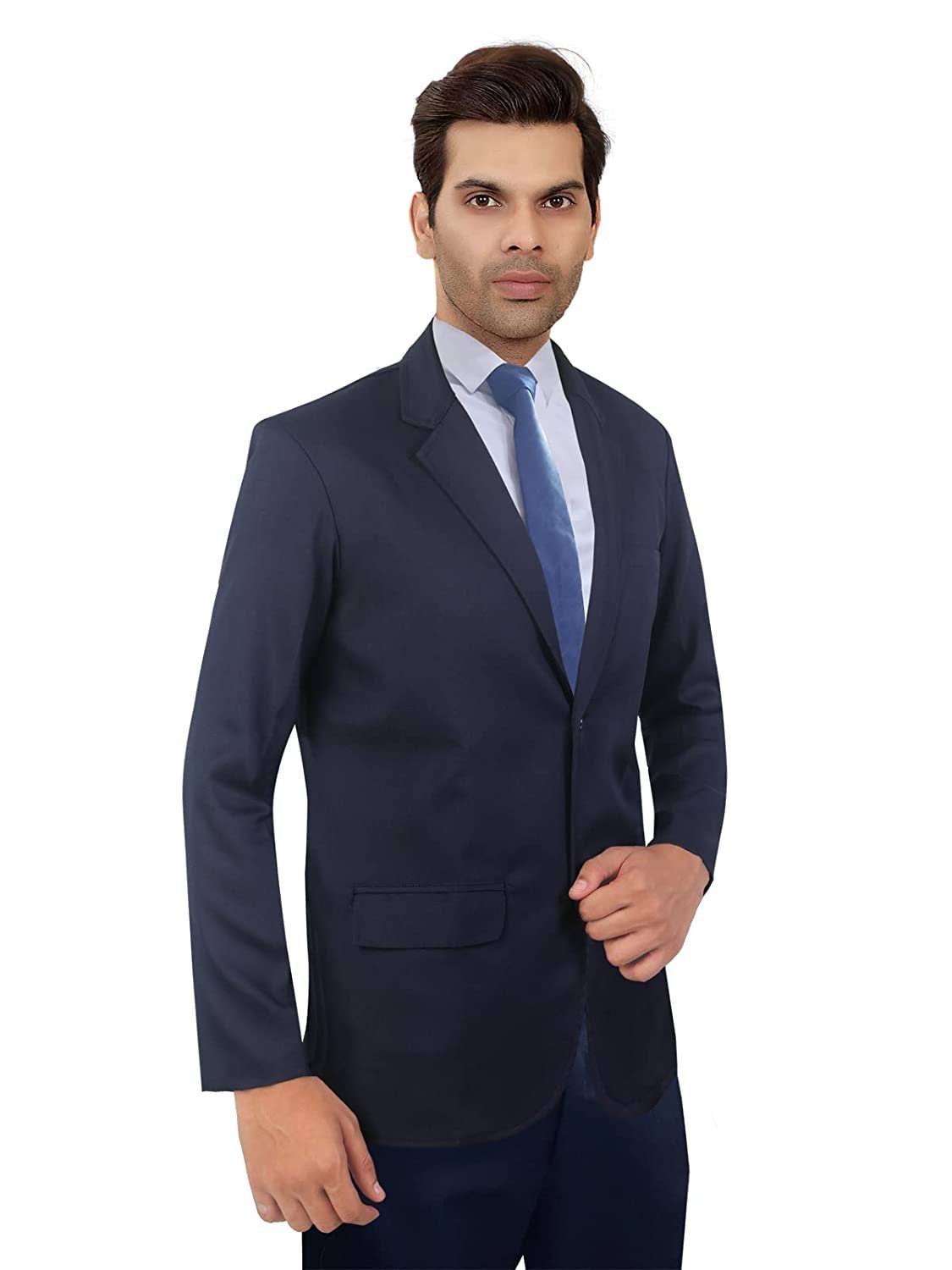Fabric Type: Poly Viscose Fabric | Style: Single Breasted | Pattern: Solid Formal Blazer | Fit Type: Regular Slim Fit | Closure Type: Buttoned | Front: Two Button | Pockets: 3 at Front & 1 Inside | No. of Flap Pockets: 2 Outside | Color: Navy Blue