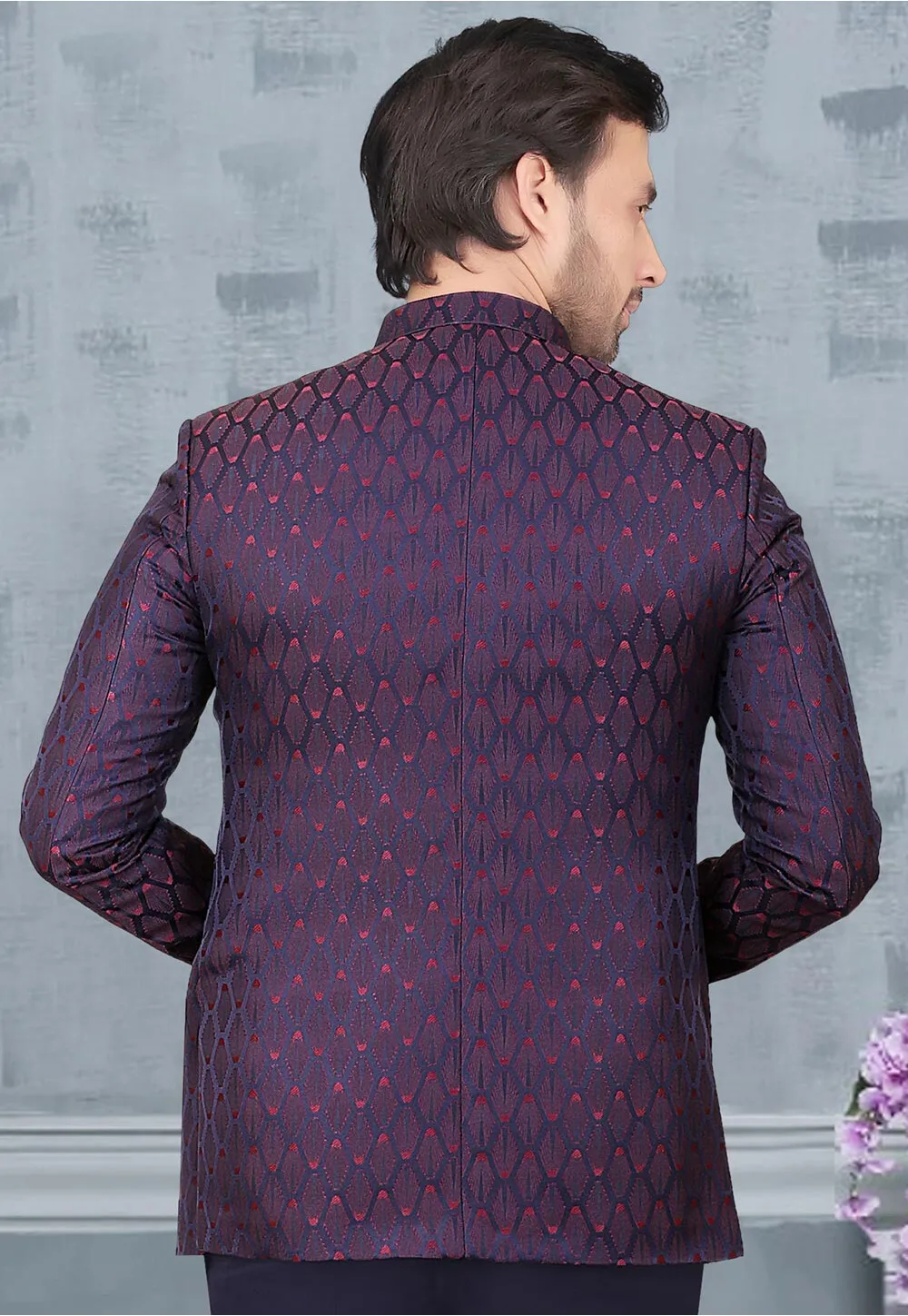 - Readymade Terry Rayon Jacquard Jodhpuri in Navy Blue